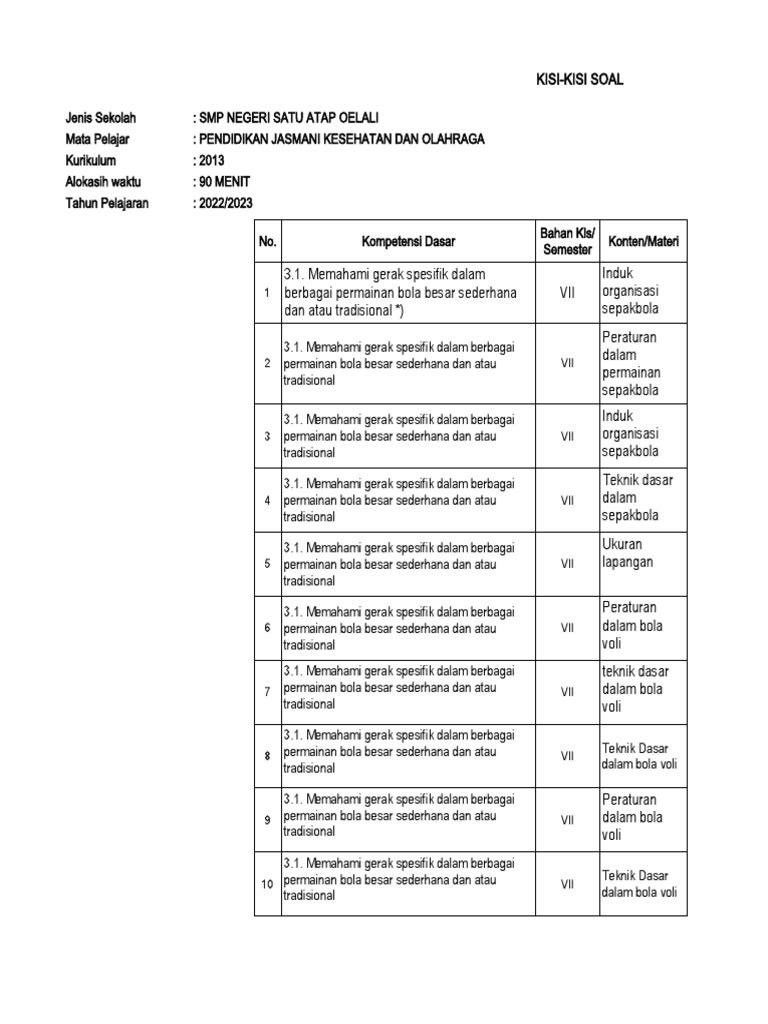 Penentuan Alokasi Waktu dan Bobot: Tentukan berapa proporsi bobot setiap KD dalam ujian. KD yang dianggap lebih kompleks atau esensial mungkin memerlukan lebih banyak soal atau bobot nilai yang lebih tinggi.
