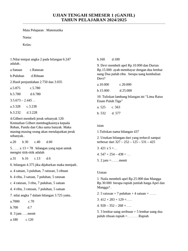 Menjelang pelaksanaan Ujian Tengah Semester (UTS) Semester 2 untuk jenjang Sekolah Dasar (SD), khususnya kelas 3, mata pelajaran Ilmu Pengetahuan Sosial (IPS) menjadi salah satu fokus penting bagi para guru dan siswa. Kurikulum Tingkat Satuan Pendidikan (KTSP) pada jenjang ini dirancang untuk memperkenalkan siswa pada konsep-konsep dasar yang membentuk pemahaman mereka tentang lingkungan sekitar, masyarakat, dan nilai-nilai kebangsaan. Kumpulan soal UTS IPS yang baik menjadi instrumen krusial untuk mengukur sejauh mana materi yang telah disampaikan terserap oleh siswa, sekaligus sebagai bahan evaluasi bagi pendidik untuk memperbaiki metode pengajaran.