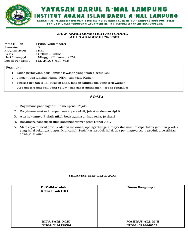 Berikut adalah beberapa contoh soal yang mungkin muncul dalam UAS Fikih MI Kelas 3 Semester 2, dikelompokkan berdasarkan jenisnya: