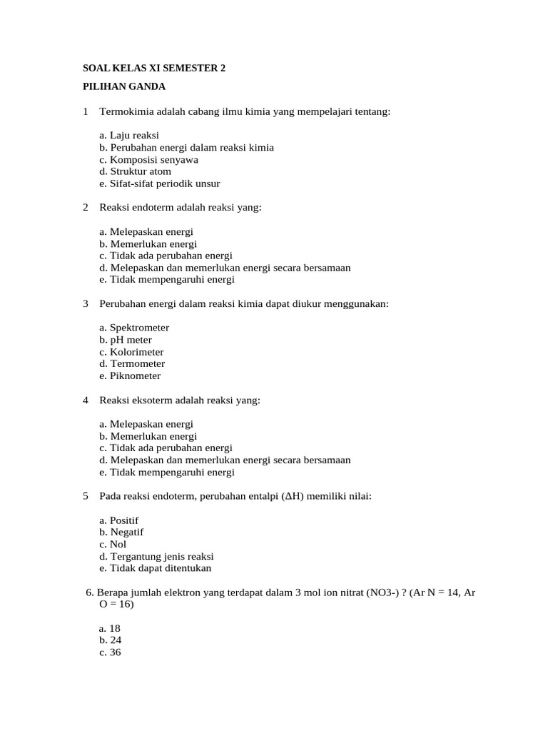 Memasuki semester kedua di kelas XI, materi kimia seringkali semakin menantang dan membutuhkan pemahaman mendalam. Mulai dari stoikiometri lanjutan, termokimia, kinetika kimia, kesetimbangan kimia, hingga larutan asam-basa, setiap topik memiliki kerumitan tersendiri. Agar sukses dalam menghadapi ulangan harian, penilaian tengah semester (PTS), dan penilaian akhir semester (PAS), membekali diri dengan latihan soal yang variatif dan terstruktur adalah kunci. Artikel ini akan membahas tuntas bagaimana Anda dapat mengunduh soal-soal kimia kelas XI semester 2 beserta pembahasannya secara efektif, serta mengapa strategi ini sangat krusial untuk kesuksesan akademis Anda.